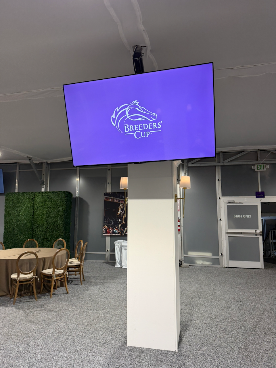 Lerner Productions provided large-scale audiovisual production for Breeders’ Cup, supporting VIP viewing areas and event infrastructure. Services included LED video walls, audio, lighting, electrical, content playback, and live switching within a 200-foot-wide VIP tent, along with AV support across additional event spaces to deliver a seamless guest experience.
